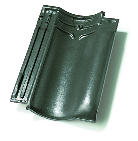 Tuile galbée en terre cuite à double emboîtement latéral et double emboîtement de tête.