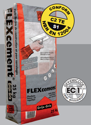 le flex cement permet le collage des matériaux suivants, tant à l'intérieur qu'à l'extérieur : les faïences, les céramiques, les mosaïques, etc.. et ça sur support tel que p.ex. le béton, la maçonnerie, les surfaces cimentées, le béton cellulaire, les plaque en copeaux de bois, les panneaux en fibres de bois, les placages, etc.. des sols à chauffage par le sol peuvent également être dallés avec le flex cement.