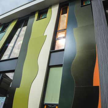 Les panneaux rockpanel colours sont fabriqués à partir de basalte naturel, une roche volcanique durable et disponible en abondance dans la nature, dont les fibres sont amalgamées à l’aide d’un liant organique à l’origine des propriétés uniques de tous les produits rockpanel. ces derniers allient ainsi les avantages de la pierre et la façonnabilité du bois. les panneaux de bardage conviennent comme revêtement extérieur, mais aussi pour les applications en pourtour de toiture et les finitions de bâtiments.