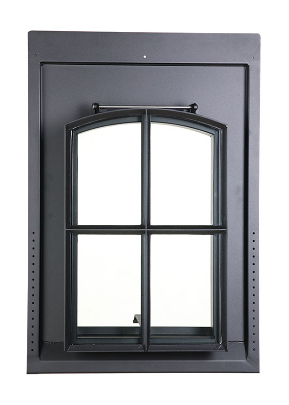 Tabatière en metal avec un raccordement fixe adapté à la pose dans une couverture de toit en tuiles, ardoises ou paille. le métal est traité antirouille et fini avec un revêtement en poudre noir ral 9005. la surface vitrée est courbée en haut avec une division croisée verticale et a comme dimensions : largeur 40 cm x hauteur 60 cm. vitrage hr++ : 1.0/4-15-33.2. valeur u de la tabatière : 1.55 w/m2k.
